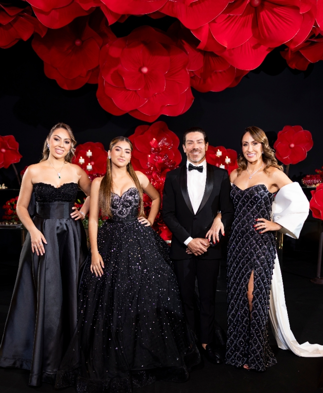 No último sábado, 1º de novembro, o Casablanca Eventos, em Goiânia, foi palco de uma noite de celebração e glamour: o baile de debutante de Laura Pelegrino. Com o tema “Baile de Máscaras”, a festa reuniu familiares e amigos em um evento marcado pela sofisticação, emoção e atmosfera de conto de fadas. A produção levou a assinatura do cerimonialista Junior Barreto. Na foto: a irmã da aniversariante Manuela Pelegrino, a aniversariante Laura Pelegrino, o pai, o odontólogo e empresário do ramo educacional Dr. Danilo Pelegrino e a mãe, a odontóloga Dra. Roberta Pelegrino.