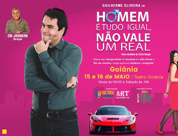 Os ingressos já estão disponíveis no site Ingresso Digital O público goiano terá a oportunidade de conferir, em maio, o espetáculo “Homem é Tudo Igual, Não Vale Um Real!”, protagonizado pelo humorista Guilherme Oliveira.