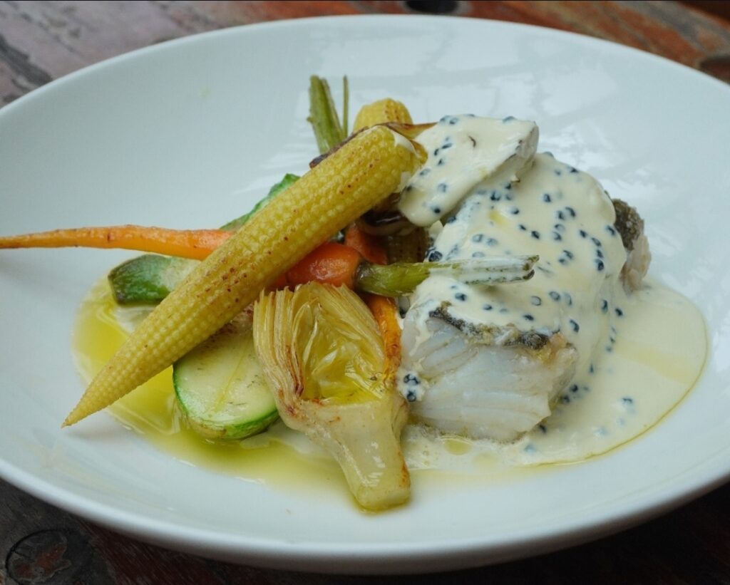 No principal, o baccalà com salsa all’olio d’oliva, acompanhado de alcachofras, ovas de peixe e legumes grelhados (R$ 225), reforça a delicadeza das preparações com frutos do mar.