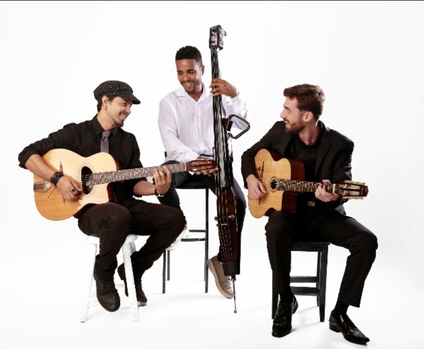 O trio conta com os músicos Fernando Santos, na guitarra e violão, Tassio Paulinelle, no contrabaixo, e Anderson Umbuzeiro, que antes tocava bandolim, agora se apresenta com o charmoso violão Monouche, oferecendo um timbre mais fiel às nossas apresentações.