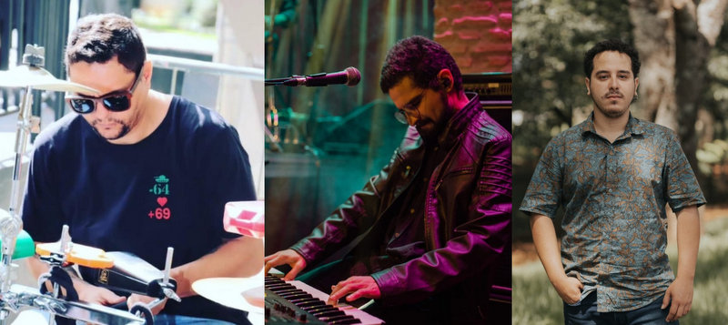 A banda que acompanha as atrações artísticas. Rafa Teixeira, Arthur Ornelas e Leandro Mourão.