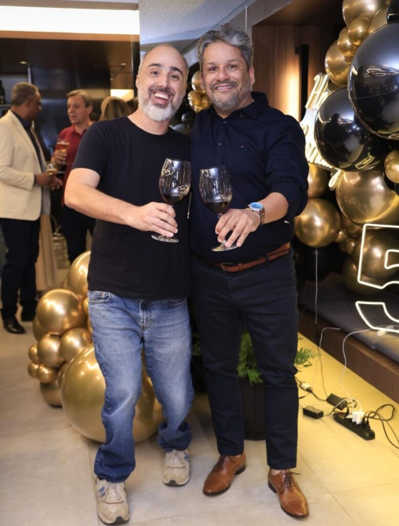 Aniversariante Luciano Medeiros e o humorista Marcos Bazzar.