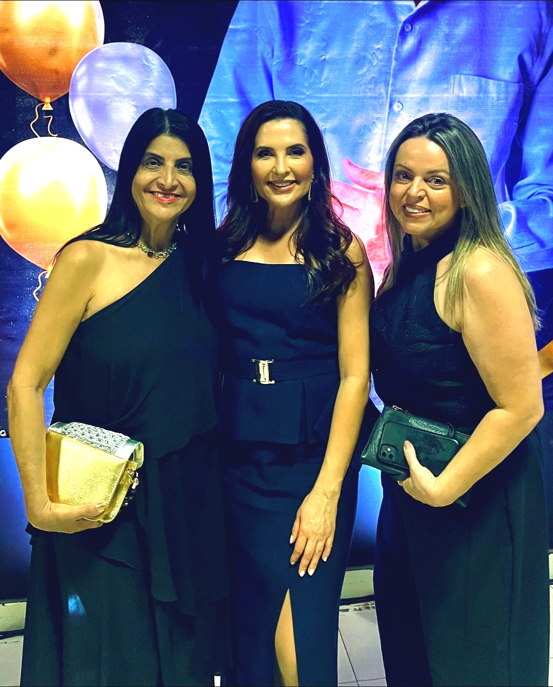 A arquiteta Cláudia Oliveira e a joalheira Mayra Saad marcaram presença no aniversário do vereador Anselmo Pereira, em prestigiado evento no Espaço Dois Ipês na última quinta-feira (21). As duas foram recebidas com carinho pela advogada Raflésia Pereira (ao centro), irmã do aniversariante.
