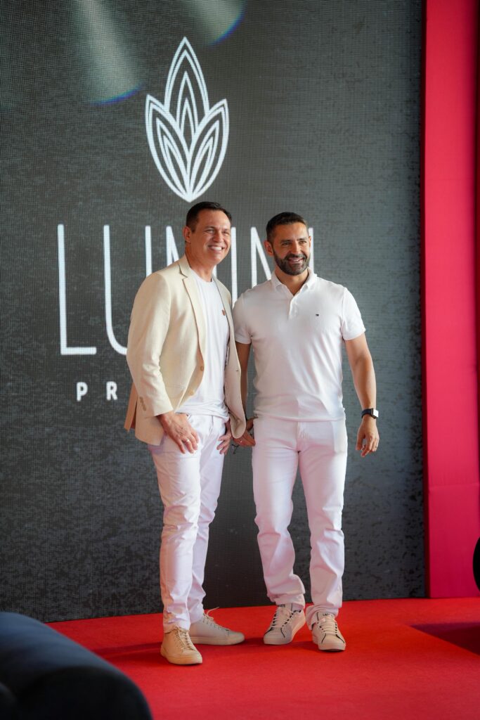 Emmanuele Louza, CEO do Grupo Flamboyant e Matheus Aleixo, cantor sertanejo. Crédito Ruan Pontes