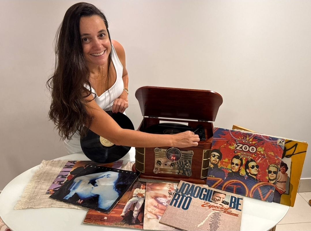“Trouxe o aparelho comigo, e já avisei os amigos para preparem o vinil que vai rolar a festa de inauguração da vitrola. Estou adorando relembrar”, conclui ela.