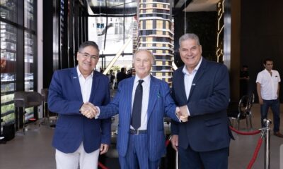 Parceria Goiás-Itália: os diretores da Sim Incorporadora, Ricardo Maciel (à esq.) e Paulo Silas (à dir.) cumprimentam o empresário italiano Tonino Lamborghini, que esteve em Goiânia...