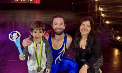 O garoto Michael Guardado, ao lado de sua mãe, Ana Maria Guardado, posou para fotos com o medalista olímpico Diego Hypólito, após a apresentação do espetáculo...