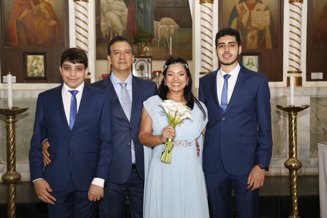 Os advogados Edilaine Oliveira Amparo e Rafael Amparo de Oliveira (centro) celebraram 25 anos de união (Bodas de Prata) no dia 20 de dezembro, em uma comemoração marcada por emoção e significado. A celebração religiosa aconteceu na Igreja São Nicolau, seguida de uma elegante recepção na Reserva 35 Adega. O momento especial foi compartilhado ao lado dos filhos Alexandre e Diego e demais familiares e amigos mais próximos, que prestigiaram o casal em uma noite de afeto, gratidão e celebração do amor construído ao longo dos anos.