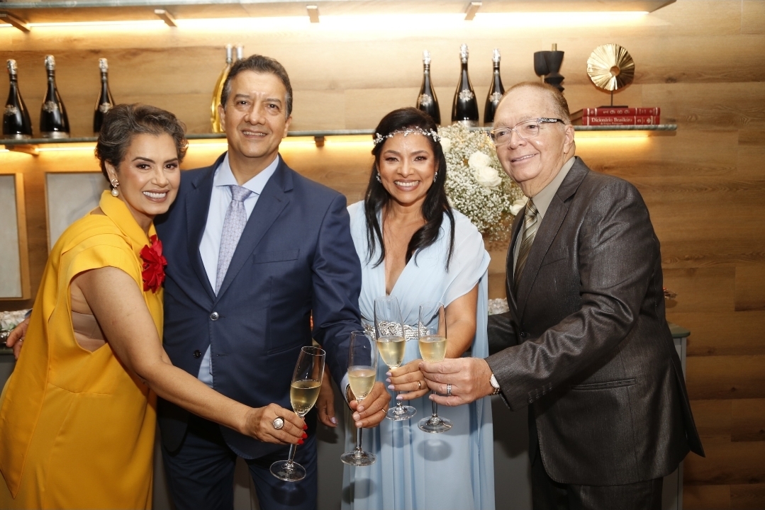 Os advogados Edilaine Oliveira Amparo e Rafael Amparo de Oliveira (centro) celebraram 25 anos de união (Bodas de Prata) no dia 20 de dezembro, em uma comemoração marcada por emoção e significado. A celebração religiosa aconteceu na Igreja São Nicolau, seguida de uma elegante recepção na Reserva 35 Adega. O momento especial foi compartilhado, Rafael recebeu a irmã Lilia Beatriz Pinheiro e o tio Magno Pinheiro e demais familiares e amigos mais próximos, que prestigiaram o casal em uma noite de afeto, gratidão e celebração do amor construído ao longo dos anos.