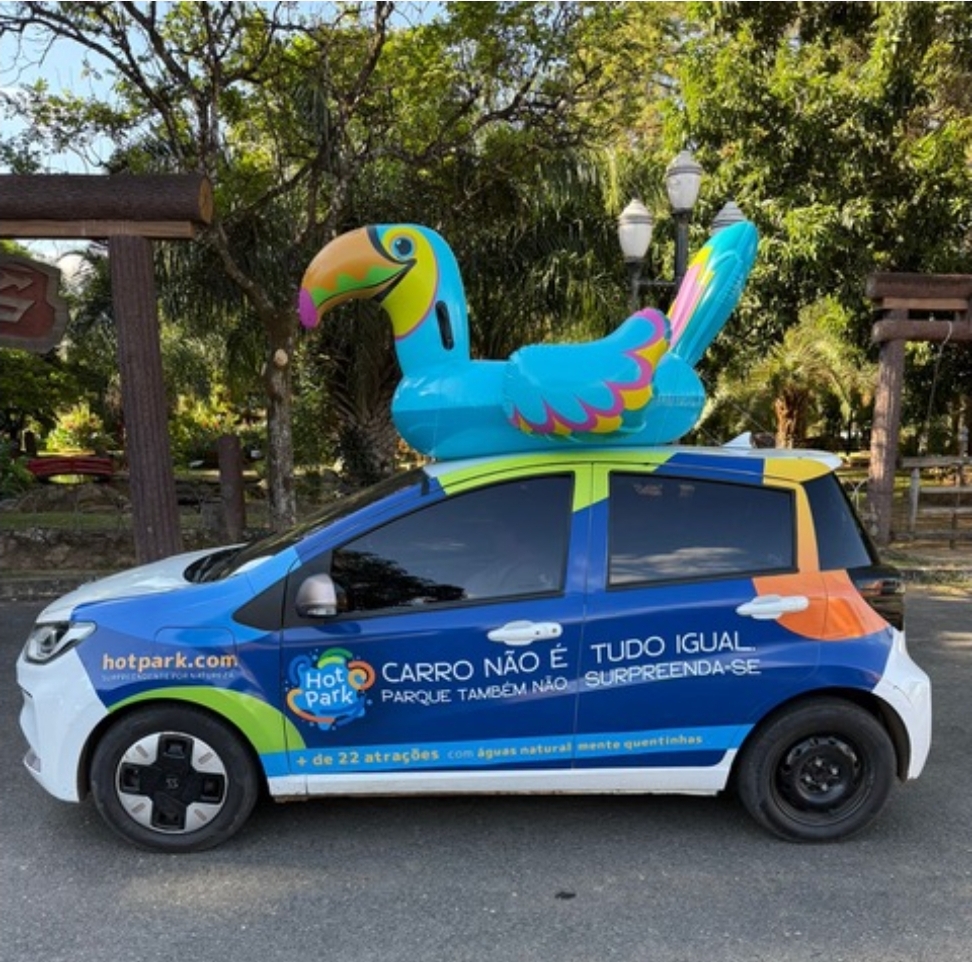 Serão seis veículos personalizados circulando pela cidade com brindes e benefícios exclusivos, como: 10% de desconto nos ingressos para o Hot Park, um copo colecionável exclusivo e 15% de desconto no refil de chopp, válidos tanto na loja física quanto nos pontos de venda autorizados em Caldas Novas.