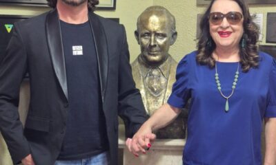 Lêda Selma, presidente, e Ademir Luiz, vice-presidente, com a estátua de Colemar Natal e Silva. A Academia Goiana de Letras (AGL) realizou, na quinta-feira (13), eleição...