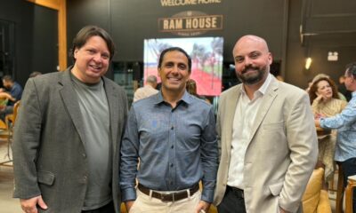 O sommelier da My Winery, Alberto Nascimento, com Leandro Daher, sócio-diretor da Raiz Urbana, empresa do Grupo Tropical, e Victor Hugo Itabaiana, no evento avant premiére...