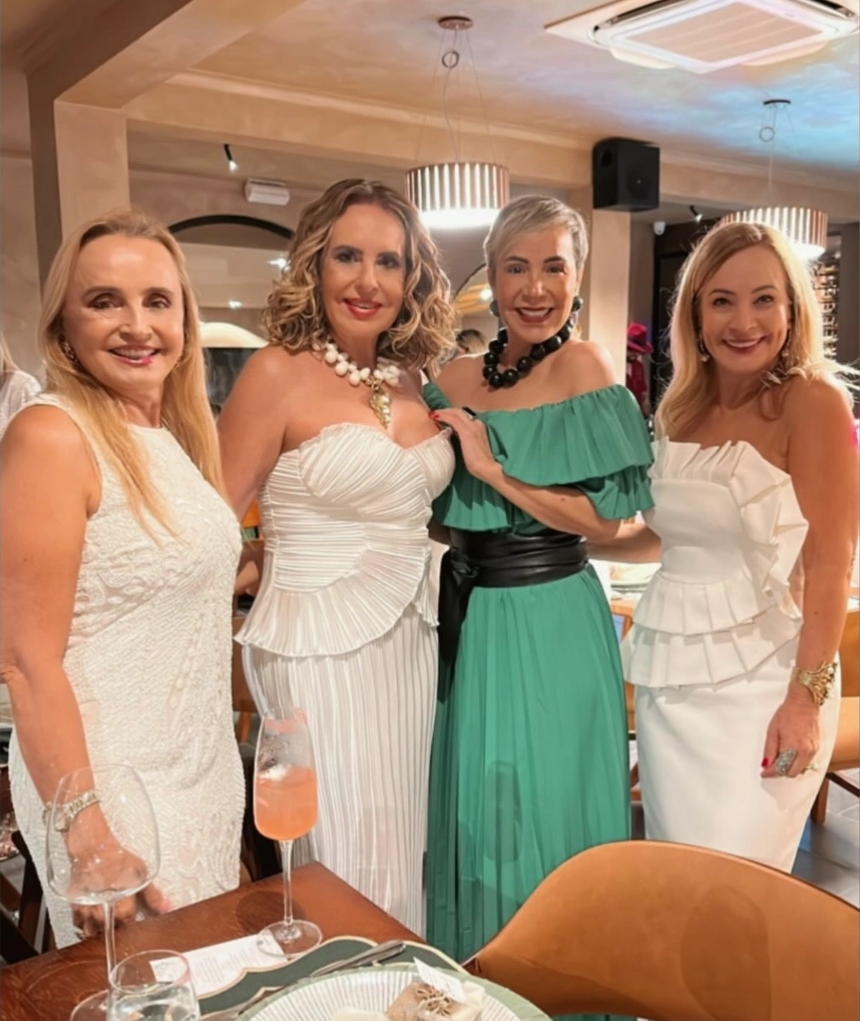 Na confraternização de final de ano do grupo de vinho Las Vinhas, realizada na terça-feira (03/12) na Casa GG Conceito no Marista, brilharam as amigas Hilda Barcelos, Liliane Chuahy, Chris Maia e Sandra Perillo — um quarteto elegante, chique e apaixonado por vinhos, que deu o tom festivo e sofisticado da celebração.