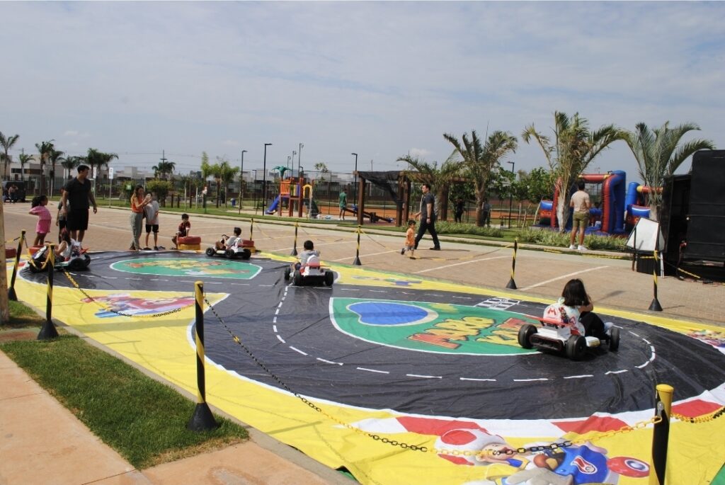 Entre as brincadeiras trazidas para o evento estavam futebol de sabão, pula-pula, infláveis gigantes, pebolim, air hokey, pipas, pintura facial, desenho, disputa de torta na cara e uma pista de “Mário Kart”, que esteve entre os brinquedos que mais fizeram sucesso.