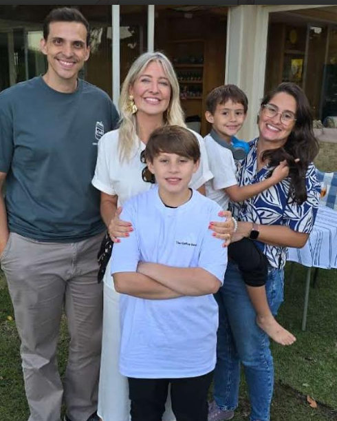 Foto da esquerda para a direita: Daniel Limiro, pai; Janaína Amar, fundadora do festival; Theo Veloso;  Romeo Veloso, irmão e a mãe Ana Carolina Veloso.