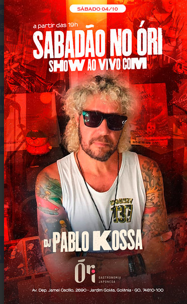 SERVIÇO DJ Pablo Kossa Data: 04/10 (sábado) Horário: a partir das 19h Local: Óri Gastronomia Japonesa – Metropolitan Mall (Avenida Deputado Jamel Cecílio, nº 2.690, Jardim Goiás, Goiânia – GO) Mais informações: instagram @origastronomia @mall_metropolitan Sem cobrança de couvert artístico