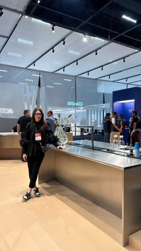 A arquiteta Fernanda Ferreira foi uma das integrantes da comitiva do Grupo Soares na Expo Revestir 2026
