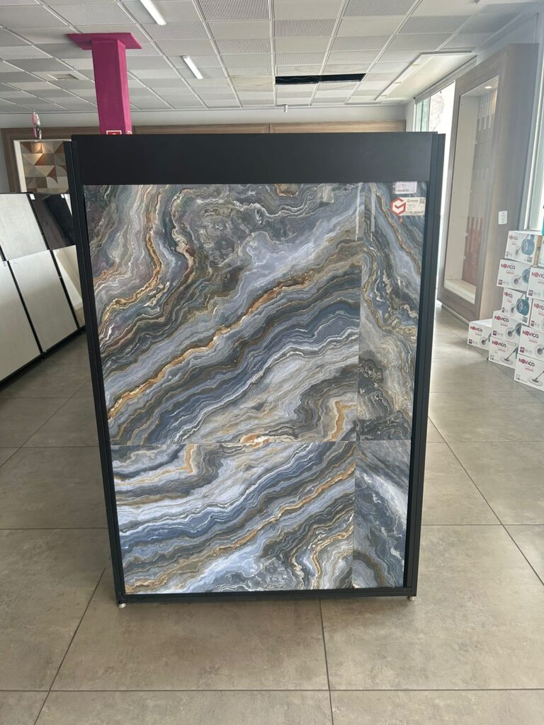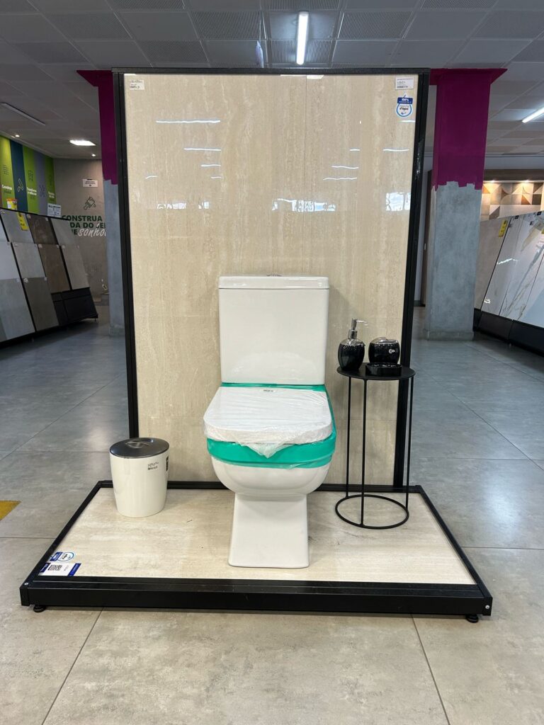 Ponta de gôndola do setor de pisos da Irmãos Soares após as atualizações: empresa criou ambientização incluindo outros elementos que simulam o uso.