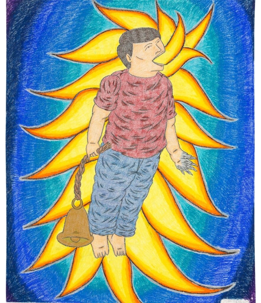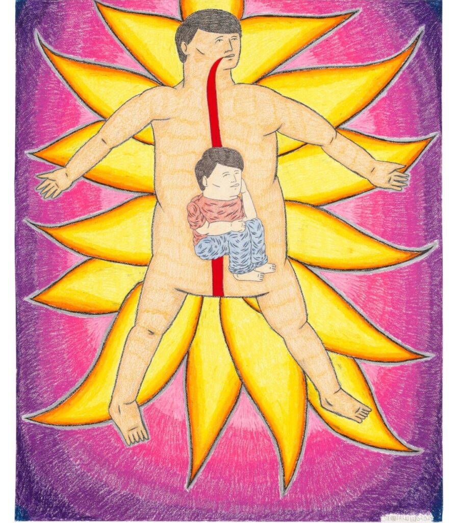 Essas figuras estão relacionadas com elementos como anjos, serpentes, auréolas, corações, estrelas e montanhas, numa justaposição de signos que remetem à fé católica, mas também à natureza.