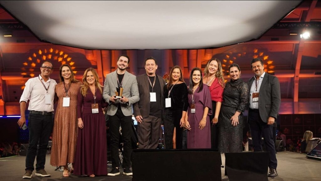 Na foto, equipe do Flamboyant comemora as conquistas ao lado da diretora da Abrasce durante a premiação em São Paulo.