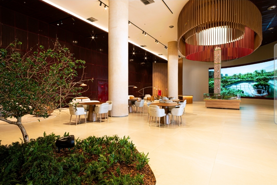 O complexo conta com salas imersivas e um decorado virtual em realidade aumentada, equipado com a tecnologia Apple Vision Pro que permite a visualização dos projetos com alto nível de realismo.