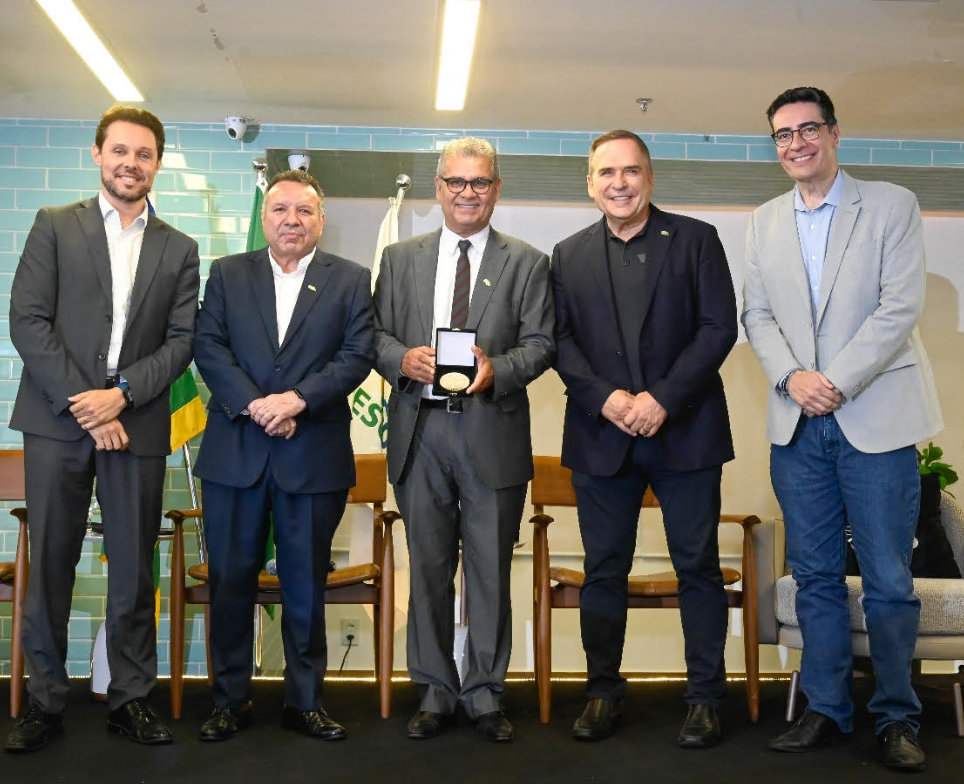 Diretor-presidente do Sicoob UniCentro Br, Diogo Mafia, recebe medalha comemorativa em lançamento do 16º Concred