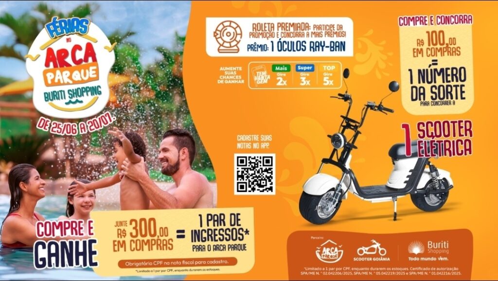 Buriti Shopping lança campanha especial de férias com ingressos para o Arca Parque e sorteio de scooter elétrica