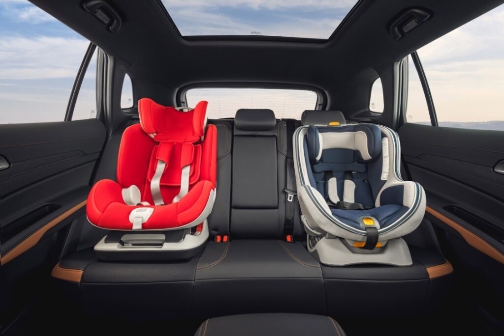 Espaço e conforto best‑in‑class: maior habitabilidade da categoria, bancos elétricos com ventilação, teto solar panorâmico e porta‑malas de 448 L (1.422 L com bancos rebatidos).-