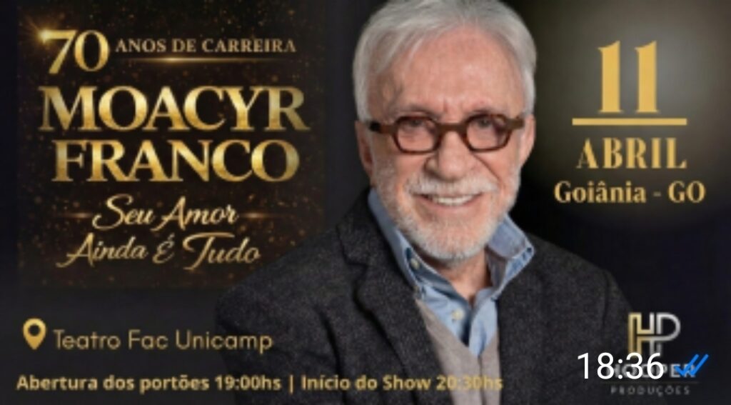 O cantor, compositor, ator e apresentador Moacyr Franco desembarca em Goiânia com o espetáculo especial “Seu Amor Ainda é Tudo”, em comemoração aos seus 70 anos de carreira.