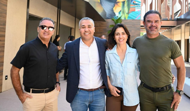 O gerente comercial, Carlos Alberto; o gerente comercial, Leonardo Soyer; o regional Renault, Leonardo Cândido e o gerente comercial, Bruno Crispim; no lançamento do novo Renault Koleos,