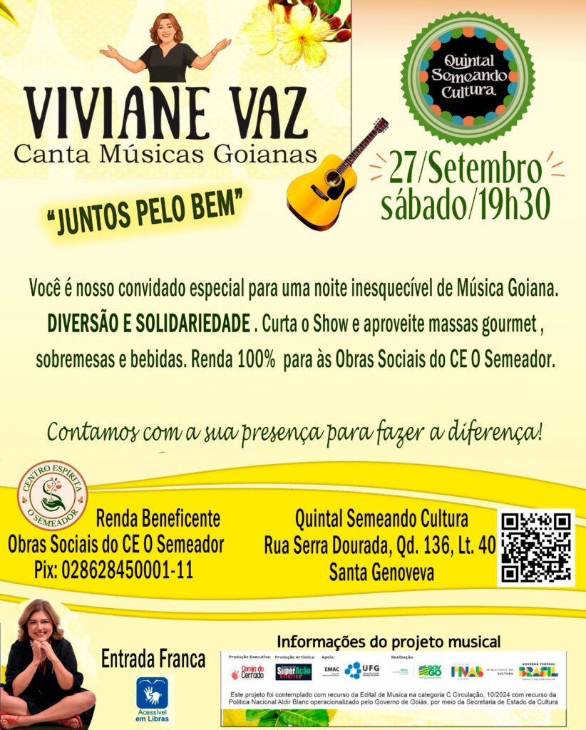 No palco, Viviane será acompanhada por Front Jr. (guitarra), Leo Araújo (baixo) e Muryllo Pacheco (bateria). O repertório reúne obras que ressaltam a identidade cultural goiana em arranjos marcados por ritmo e emoção.
