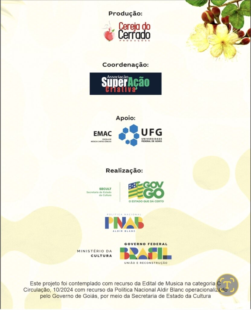 A realização é da Cereja do Cerrado Produções, com coordenação da Associação SuperAção Criativa, que tem como propósito difundir a música e ampliar a projeção de artistas locais.