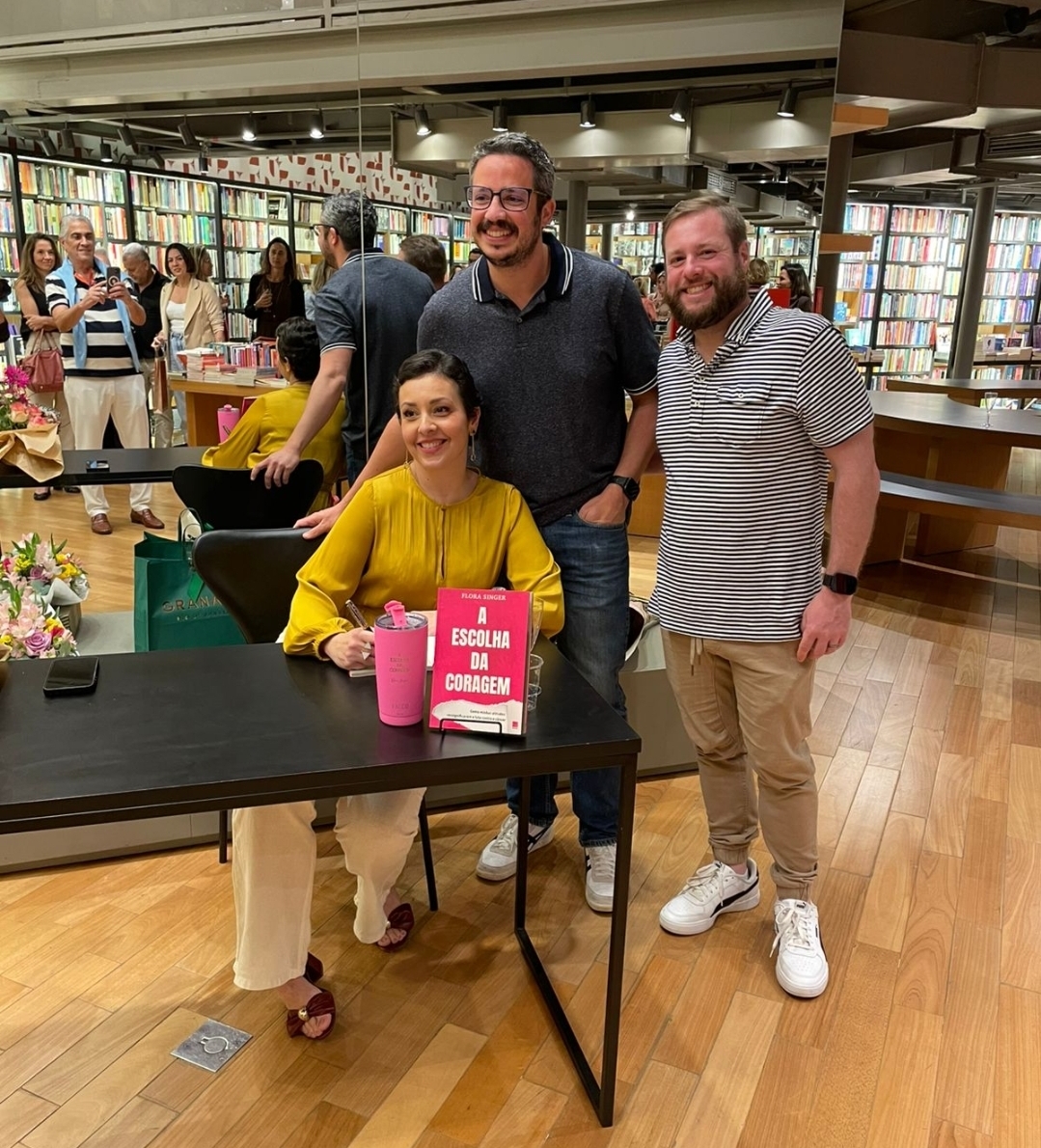 A publicitária Ana Flora Singer lançou, na noite de quarta-feira (10), seu livro “A Escolha da Coragem”, da Editora Reflexão. O evento de autógrafos aconteceu na Livraria da Travessa, no Shopping Villa Lobos, no bairro de Pinheiros, São Paulo, e reuniu familiares e amigos que prestigiaram a autora. Entre os presentes estavam os primos Rafael Fiorda e André Sinico.