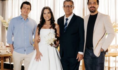 O empresário e ex-deputado estadual Wagner Villela posou ao lado dos filhos, Carlos Villela e Rafael Villela, durante o casamento da filha Karolina Villela com o...
