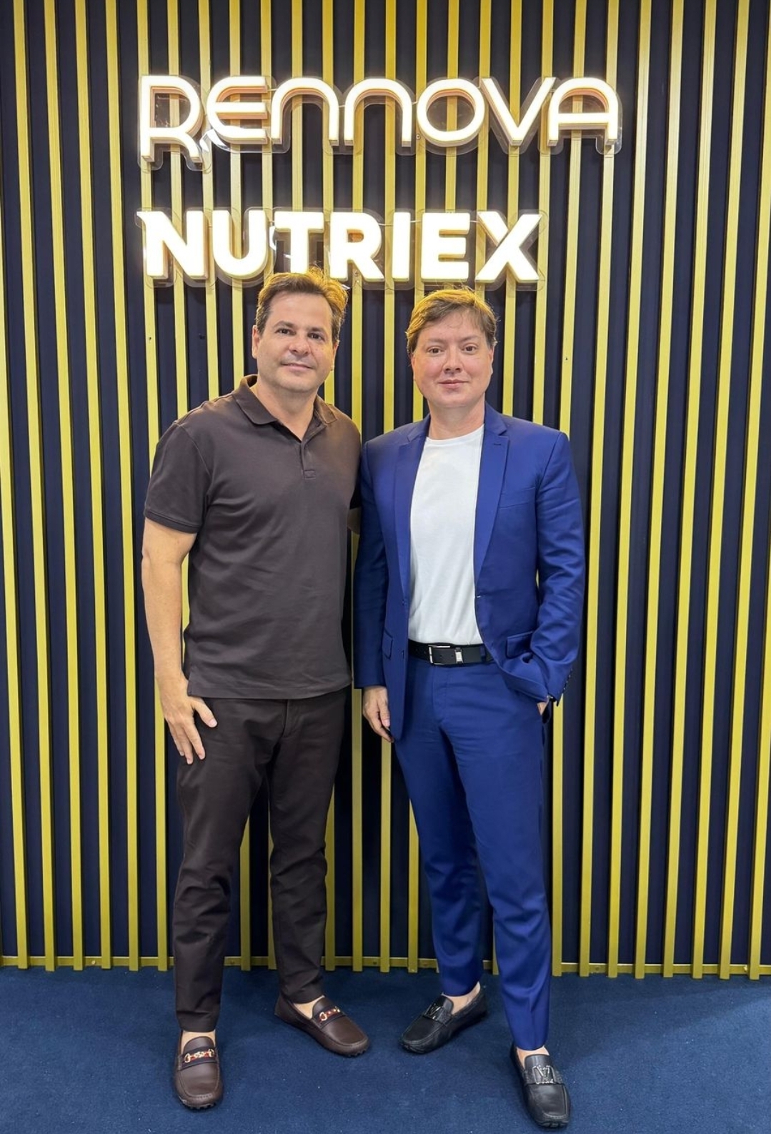 O dermatologista Dr. Alessandro Alarcão esteve nesta terça-feira (14/10/2026) em visita à fábrica da Rennova, em Goiânia, onde foi recebido pelo CEO Leonardo Rezende.