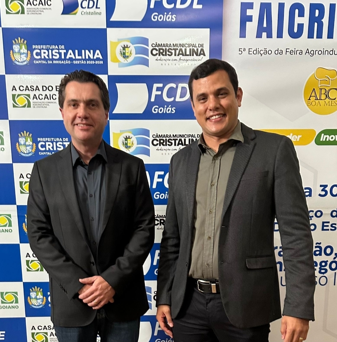 Gustavo Veloso, presidente da Associação Comercial Agroindustrial de Cristalina tem o apoio de Luís Otávio Massa, prefeito municipal na realização da FAICRIS, feira de negócios e o Festival ABC da Boa Mesa de Cristalina.