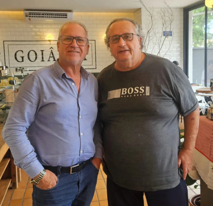 O empresário e presidente da Aceg- Associação Comercial e Empresarial de Goiânia José Torres e o promotor de eventos Elpidio Fiorda Neto durante o café da manhã na Casa Elza do Marista na última sexta-feira (17), na pauta parcerias no setor de eventos empresariais.