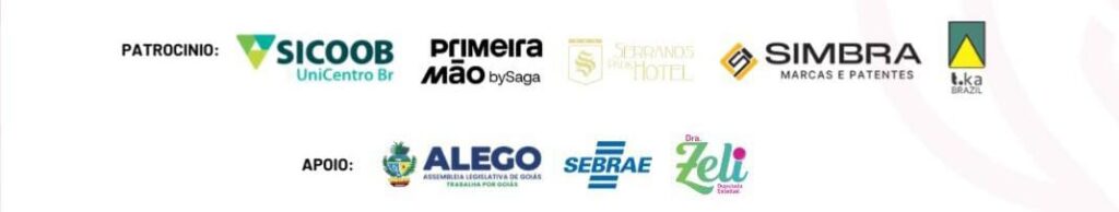 Patrocínio: Serrano´s Park Hotel e T.ka Brazil, SICOOB UniCentro BR, Primeira Mão By SAGA, SIMBRA MARCAS E PATENTES.