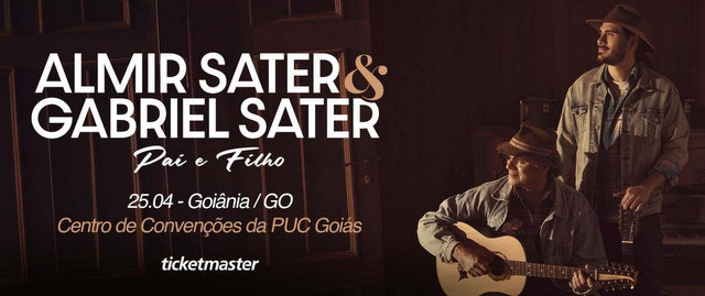 Almir Sater, um dos maiores nomes da música brasileira, embarca neste projeto inédito ao lado de seu filho, Gabriel Sater. Os dois celebram a união entre gerações, mesclando a experiência e a tradição de Almir com a inovação e o talento de Gabriel. Ao todo, serão 60 apresentações em uma jornada musical que atravessa o tempo, as raízes e a herança cultural. Na noite de sábado, dia 25 de Abril eles se apresentação no Centro de Convenções da PUC Goiás, em Goiânia. O site https://www.ticketmaster.com.br/ é canal oficial de vendas digital dos ingressos limitados.