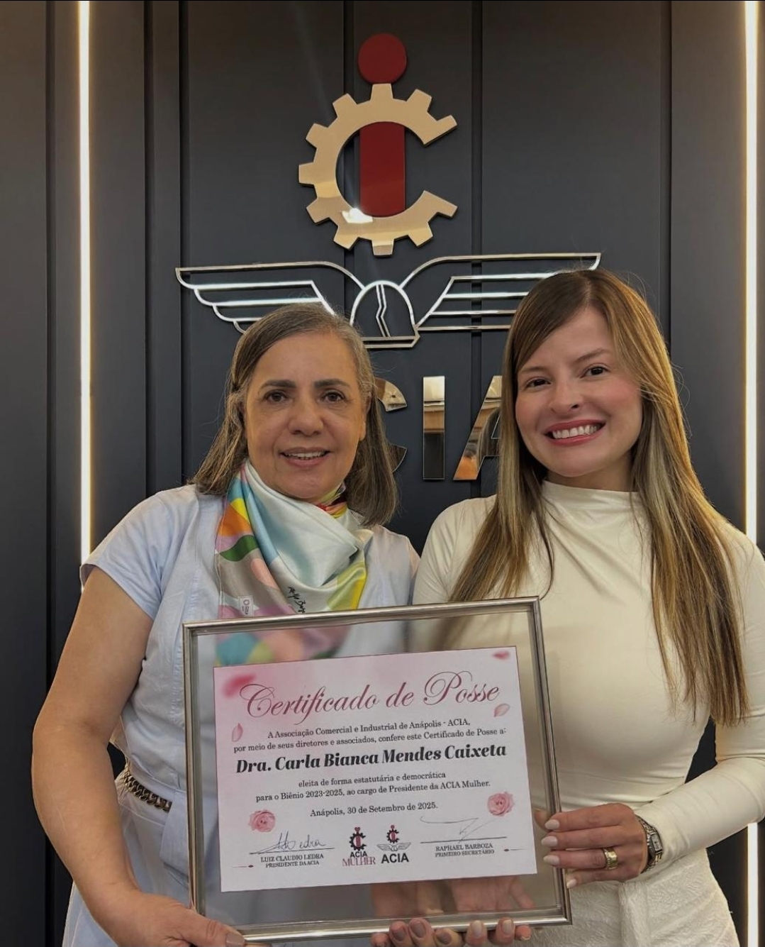 Dra. Carla Caixeta recebeu das mãos da vice-presidente da Associação Comercial e Industrial de Anápolis (ACIA MULHER), Dra. Juracy Alcântara o título de presidente da ACIA MULHER.