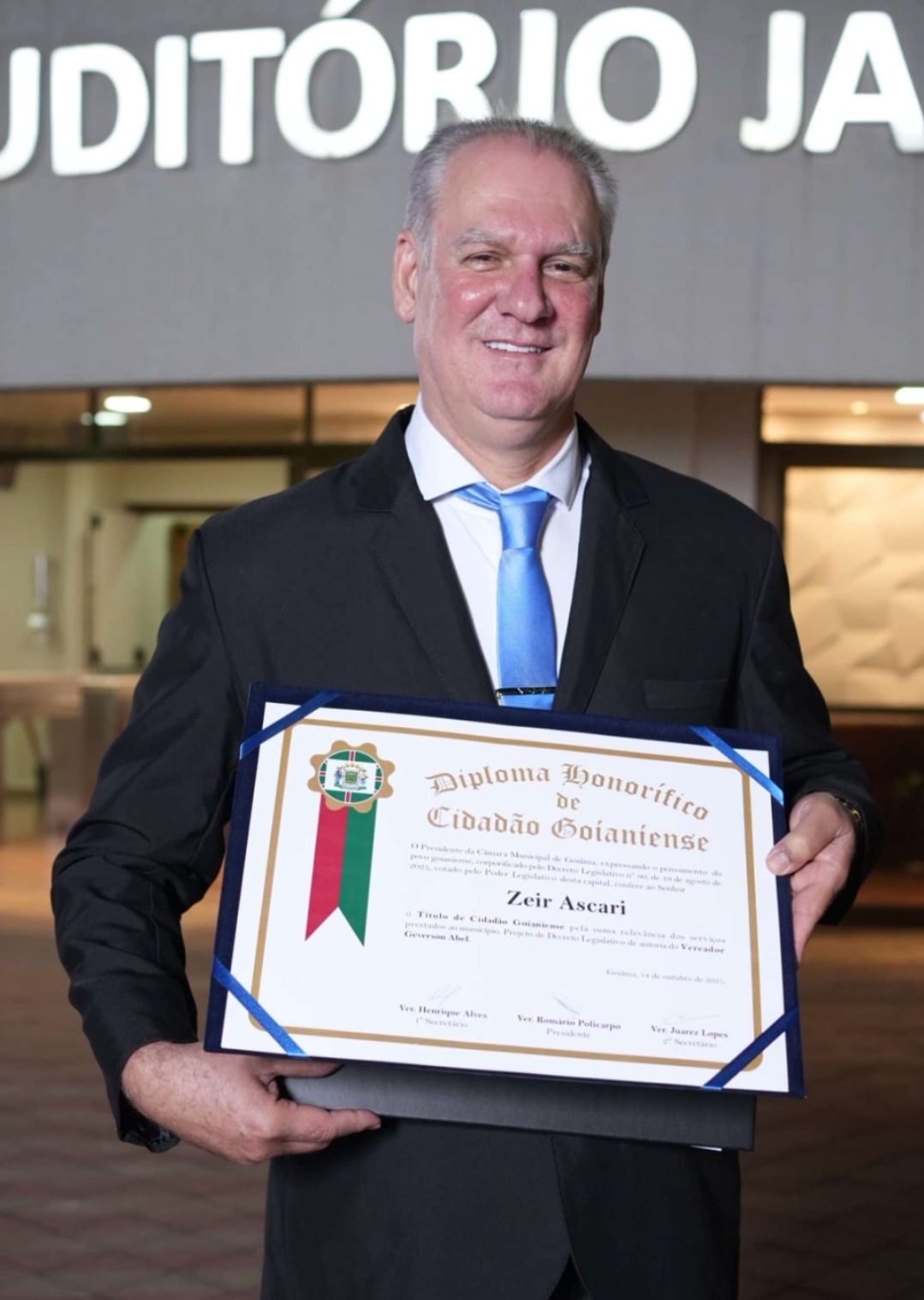 A dedicação ao cooperativismo e o exercício da liderança pautaram Sessão Solene na Câmara de Vereadores de Goiânia, nessa terça-feira (14), em concessão do Título de Cidadão Goianiense ao presidente da Sicredi Cerrado GO, Zeir Ascari.