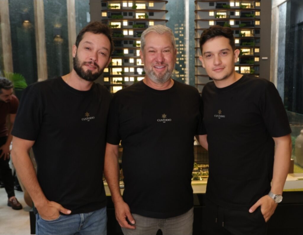 Os sócios da Custódio Incorporadora, Marcus Custódio (diretor comercial), Moisés Custódio (diretor de riscos) e Pedro Custódio (diretor financeiro).