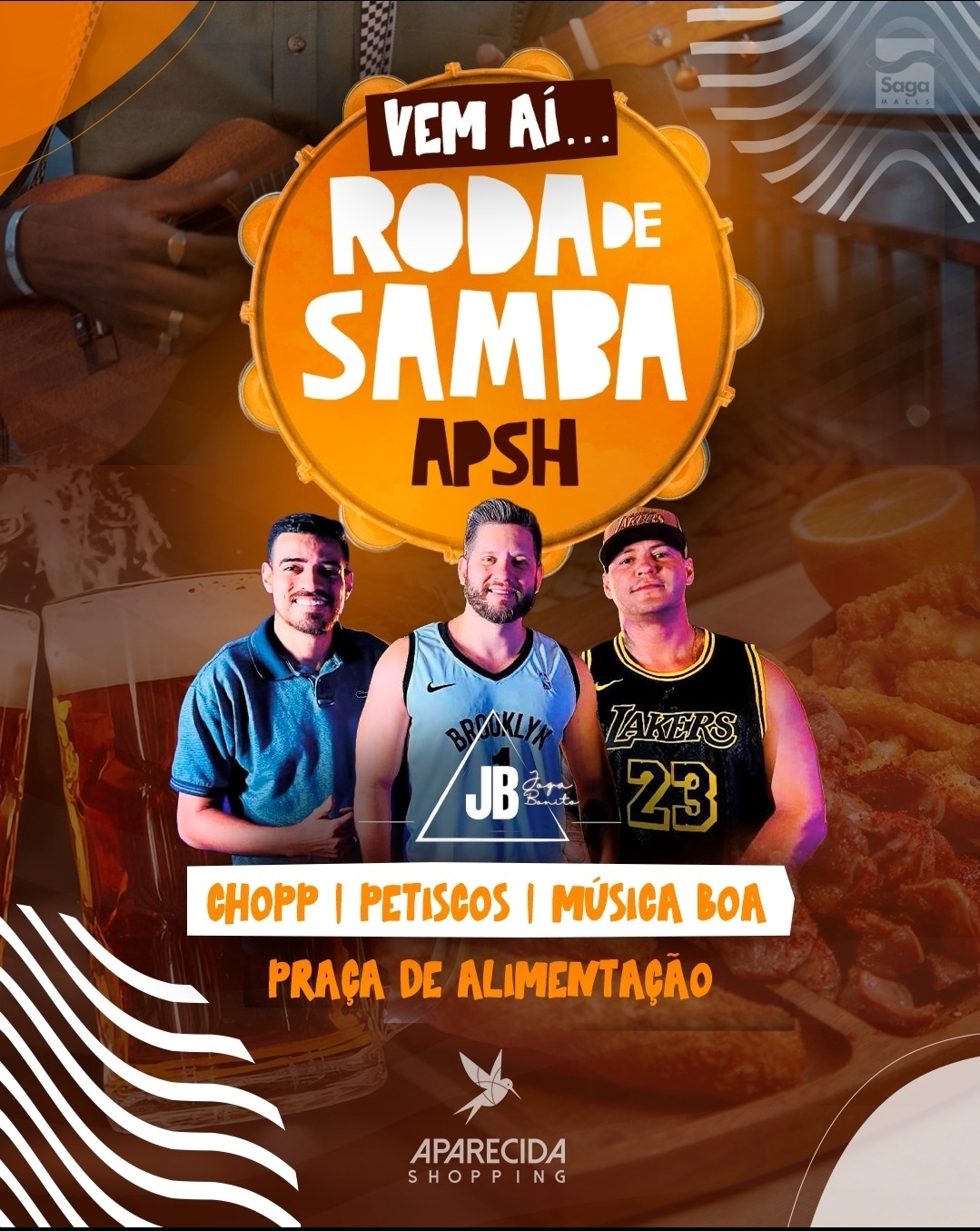 Grupo Joga Bonito comanda a festa gratuita na praça de alimentação, do Aparecida Shopping com muito pagode, chopp gelado e petiscos a partir das 16h Em ritmo de alegria e com o coração já batendo no compasso do Carnaval, o Aparecida Shopping preparou uma tarde especial para quem estiver em Aparecida de Goiânia e região no próximo dia 17 de fevereiro.