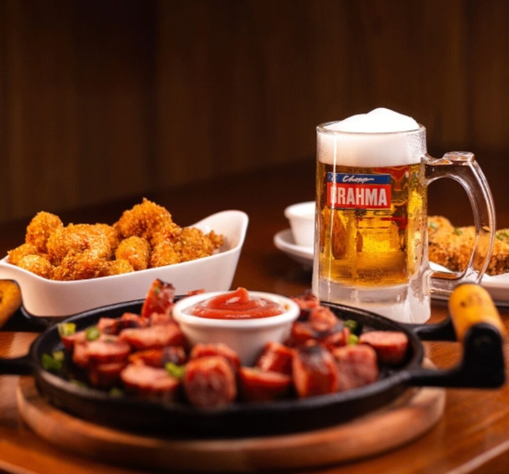 O menu é complementado por uma carta de drinks com mais de 30 opções entre clássicos e autorais, além de chopp Brahma servido na caneca gelada e uma carta de vinhos com rótulos selecionados da importadora Decanter.