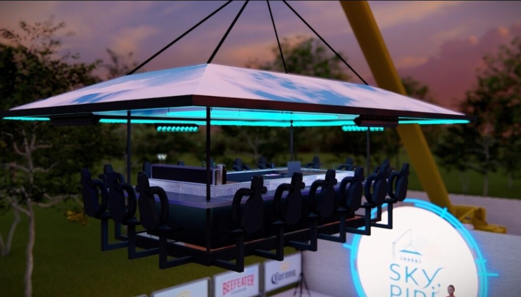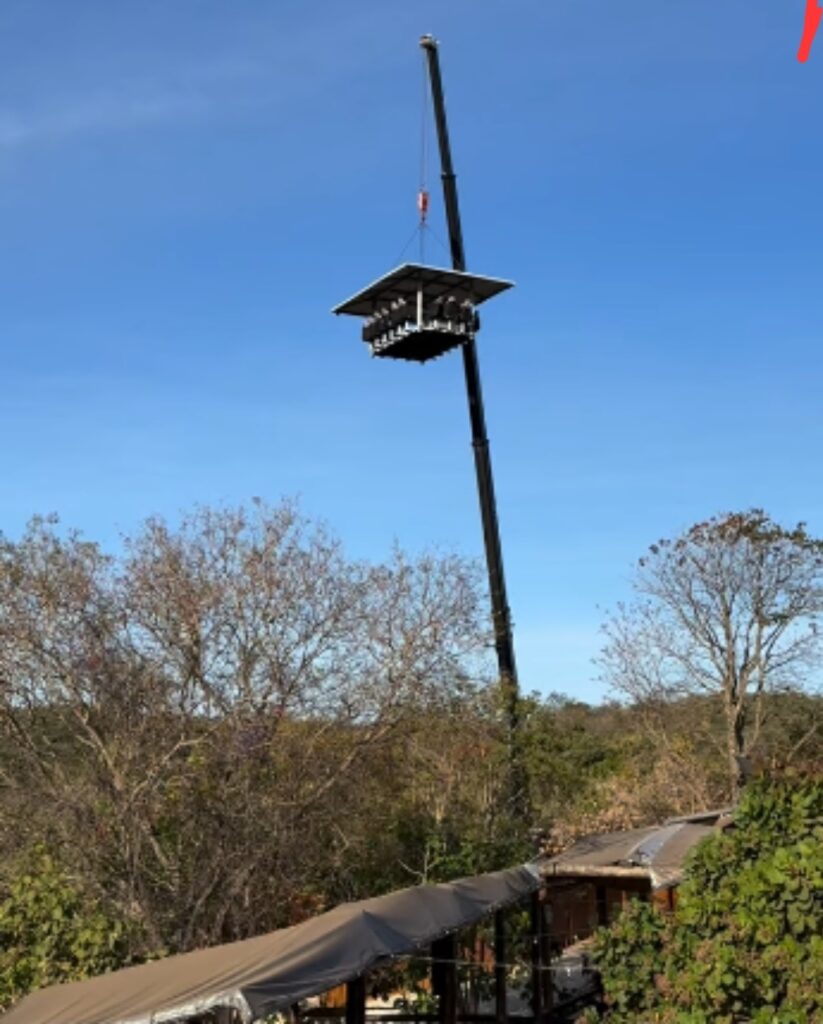A experiência gastronômica suspensa a 50 metros de altura oferecerá ao público uma vista panorâmica incrível para a Serra dos Pireneus, enquanto os grupos de até 18 pessoas apreciam por 1h, um menu all inclusive assinado pelo Chef Luiz Couto (um carioca, com experiência nas casas do grupo do Chef Ian Baiocchi) e uma trilha sonora especialmente selecionada para o momento.