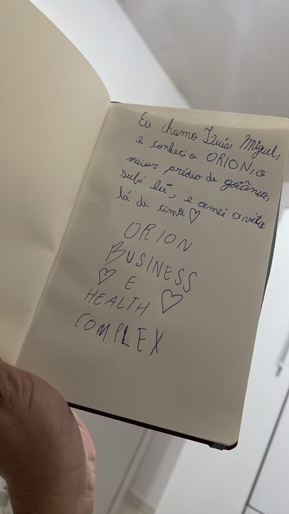 Dessa forma, o síndico do complexo, Leopoldo Gouthier, realizou uma visita guiada com o menino e seus responsáveis pelo prédio, que é um dos maiores do Brasil, terminando no heliponto.