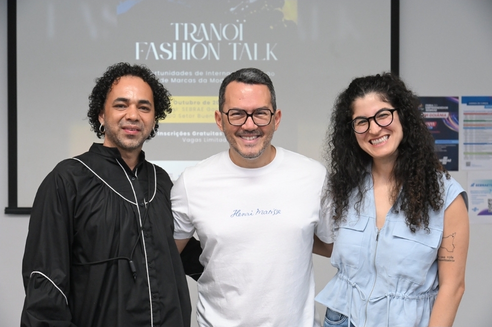 O empresário Leandro Pires, especialista em negócios de moda e projetos culturais, e Isabela Keiko, representante exclusiva no Brasil dos salões Tranoï, reconhecidos por impulsionar designers emergentes no mercado europeu, compartilharam sua experiência e provocaram reflexões sobre os caminhos da moda goiana no cenário global, durante o Tranoï Fashion Talk, que aconteceu no último sábado (11) no Sebrae Goiás.
