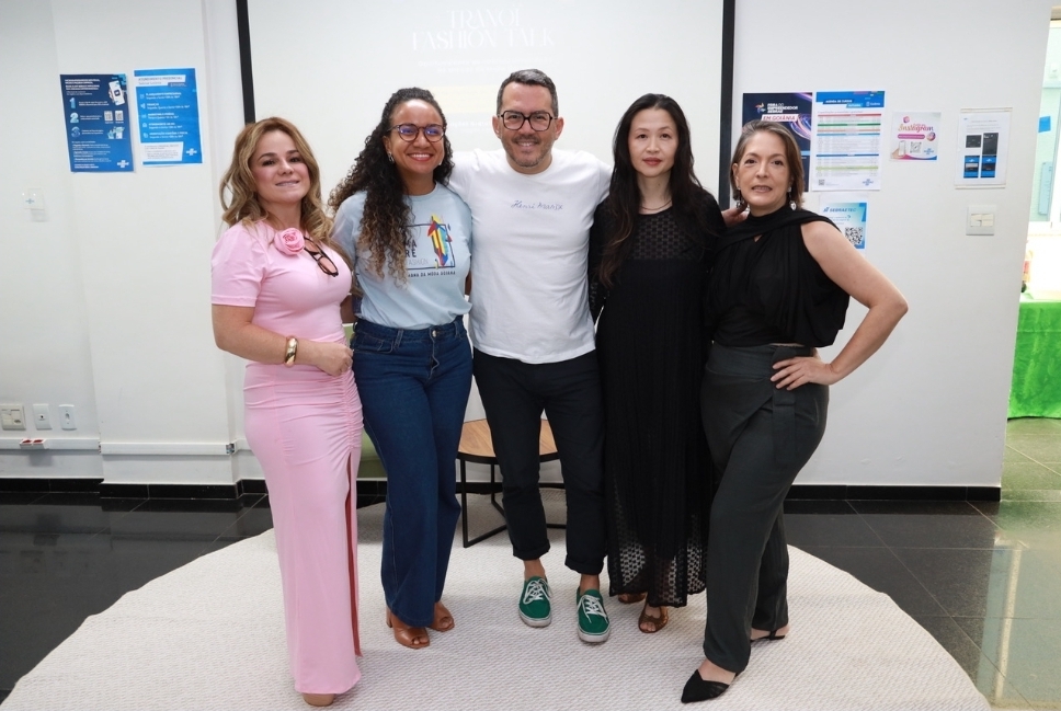 Beatriz Dorneles – Gestora de Moda de Goiânia do Sebrae, Thaís Oliveira, gestora estadual de moda do Sebrae, Leandro Pires, empresário e especialista em negócios de moda e projetos culturais, Isabela Keiko, representante exclusiva no Brasil dos salões Tranoï, e Ildeth Dias, Coordenadora de moda do Senac Goiás, durante Tronaï Fashion Talk. (crédito Edmar Wellington)