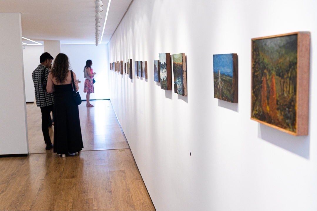 Já David Almeida, em sua primeira individual em Goiânia, investiga a pintura como linguagem a partir de paisagens instáveis, construindo atmosferas entre o real e o imaginado.